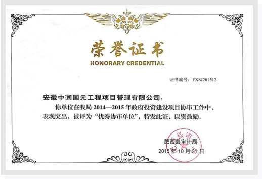 公司获得肥西县审计局2014-2015年度考核优秀协审
